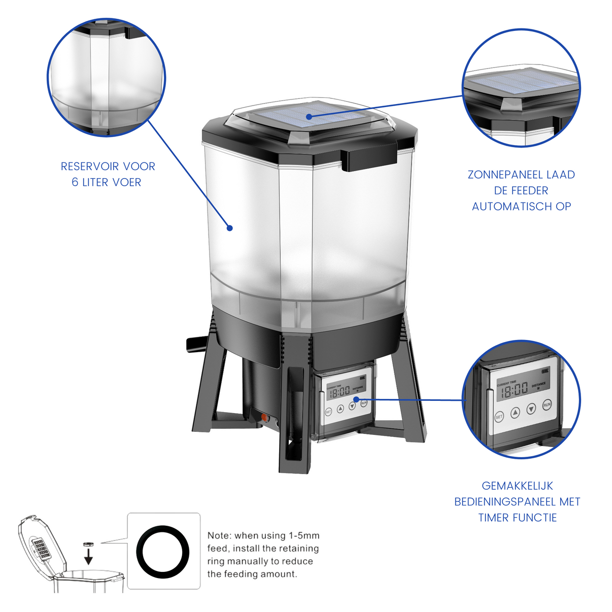 BluFeeder - Automatisk Fiskmatare Damm Solenergi - 6L Reservoir