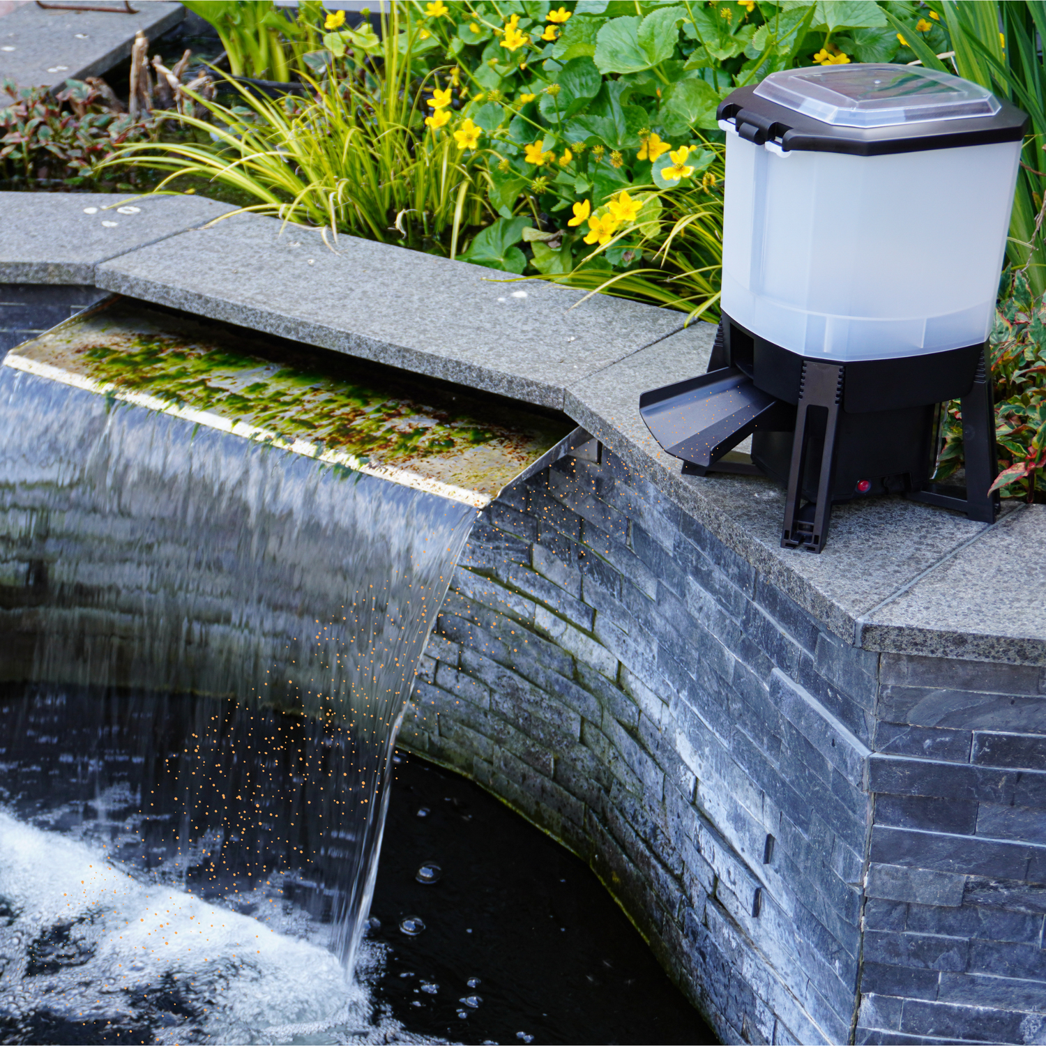Problemfri semester med en automatisk fiskmatare för damm